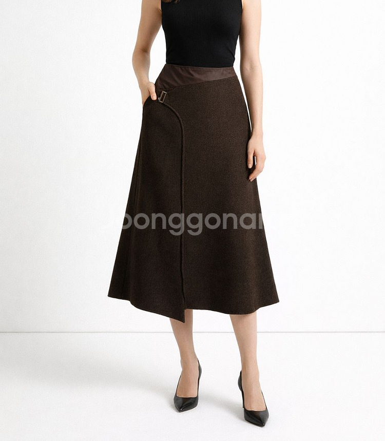 브라운 색상의 롱스커트입니다 독특한 디자인으로 세련된 스타일이에요 울 소재로 제작되어 고급스러워요 55사이즈 허리32-33센치 총장72센치