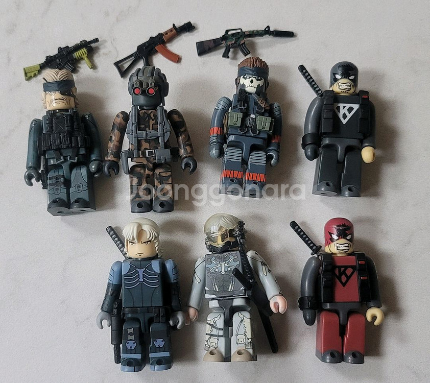 메디콤토이 큐브릭 메탈기어 솔리드 5종 팝니다. 코스타스 어쌔인 2종 추가해서 총 7종 입니다. 라이덴 칼집과 칼부분이 부려져서 순접상태입니다. 나머지사항들은 사진으로 확인부탁드립니다. 직거래 1호선 오류동역 or 7호선 천왕역 입니다. O1O-6ZZO-86Z8 업무중이니 문자만 부탁드립니다. *네고.교환.예약.비매너문의 답변안드립다. *펑크. 잠수타셨던분과도 거래하지 않습니다 *구입후 반품불가니 신중히 한번 더 생각후 구입하세요. *미성년자와 거래 하지않습니다.