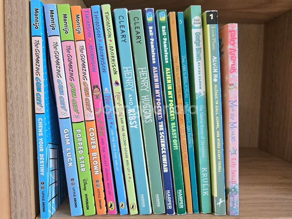 AR 3-4점대 재미있고 읽기 좋은 글씨 큰 여아용 원서 일괄 판매합니다. GUMAZING GUM GIRL 4종과 KEENA FORD 3종은 웬디북 구매 후 혼자 읽기만 한 책이라 상태 좋습니다. 비슷한 수준 책들 덤으로 드립니다. 덤으로 드리는 책은 대부분 유명 대치어학원 에디센 초2 교재로 숙제할때 써서 사용감이 있습니다. 택포가이니 하실 분만 연락주세요.