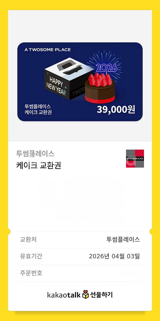 투썸플레이스 39,000원권 입니다. 30,000원에 거래합니다 실시간 미사용 인증후 입금 후 바코드 전달 진행될거고, 교환환불은 불가 합니다 :) 챗주세요!