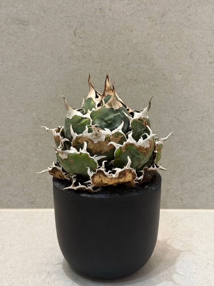 아가베 티타노타 백경 성체 판매합니다. 유묘부터 이쁘게 키우는 것은 꽤 어렵지만, 이 개체는 완성된 수형으로 적정 광량이 있다는 전제하에 관수를 조금 보수적으로 하시면 계속 수형 유지하며 아름답게 키우실수 있습니다. 아가베팩토리산 개체로 일반 백경보다 가시 지분이 많고 야생미가 뛰어난게 특징입니다. 식물만 지름 15cm, 높이 15cm 정도입니다.