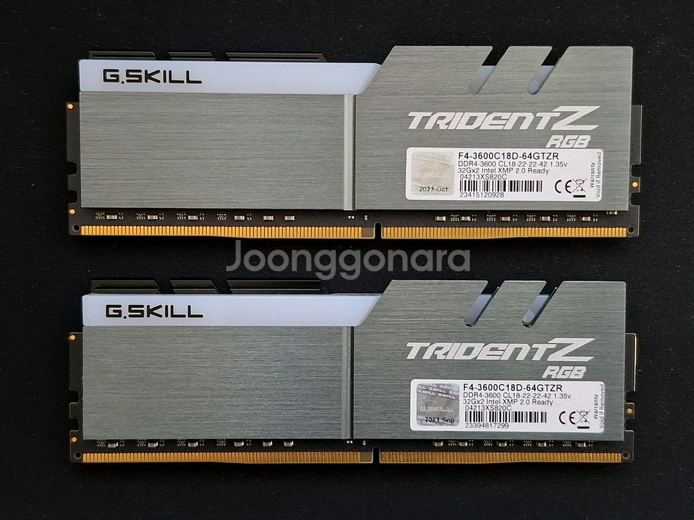 판매하는 모든 제품은 개인 또는 사무실에서 사용하던 제품으로 최대한 깨끗히 하고 상태점검하여 발송합니다. 네고는 정중히 거절하도록 하겠습니다. 톡없이 결제해 주셔도 등록된 주소지로 발송후 송장번호 남겨드립니다. 평일은 오전 11시 이전 결제건은 당일 발송 / 이후 결제건은 다음날 발송 (토요일은 금요일 밤 11시 이전 결제건에 한하여 토요일 발송, 이후 결제건은 월요일 발송) 제품명 지스킬 DDR4 3600 64GB(32GB 두개) 국내 정품인지 무상 AS가 남았는지 확인해 보지는 못하였습니다. 개인 컴퓨터에서 사용하던 제품이며 잘 작동하는지 확인해 보았습니다. 무상 AS여부와 관계없이 제품 수령일 기준 1주일간 불량 및 하자 발생시 전액 환불해 드립니다. 1. 사진은 2026년 2월 7일 실사진 이며 2. 깨끗하고 소음없이 잘 작동 됩니다. 3. 제품 수령후 1주일간 하자 발생시에는 전액 환불해 드립니다. (단, 임의 분해나 충격에 의한 손상은 곤란합니다) 4. 정품 박스는 없지만 뽁뽁이 감싸서 안전하게 배송해 드리며 5. 아이디 누르면 제가 판매중인 다른 물품과 같이 구입 가능하며 합배송 가능합니다.