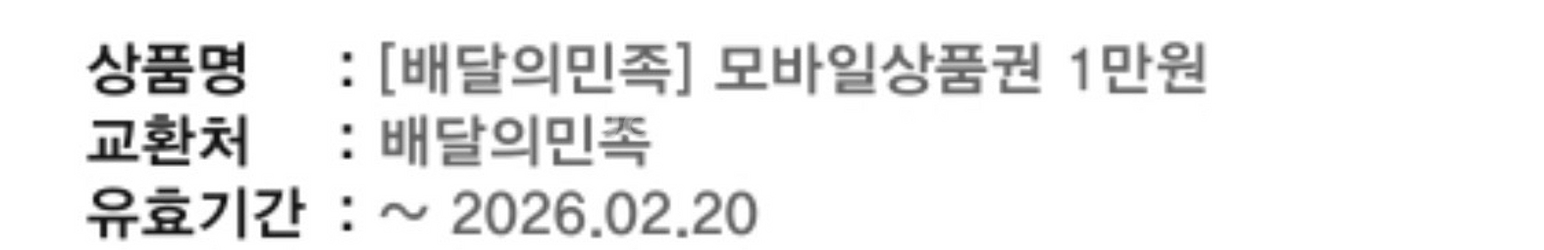 배민 배달의민족 모바일상품권 25000 유효기간 26.02.13 5000 26.02.20 10000 10000