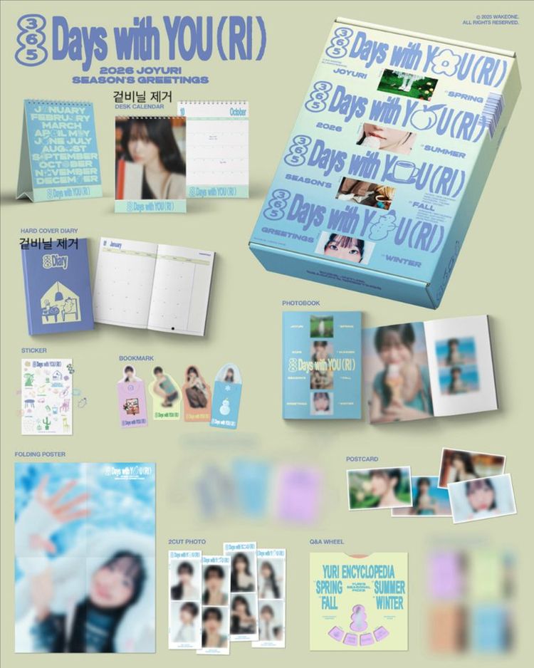 사진상으로 블러 처리 돼 있는 포토카드 4종과 미니 캘린더 키링 제외 풀구성입니다 다이어리와 캘린더만 겉비닐 제거돼 있고 나머지는 포장도 그대로인 새 상품이에요 GS반값택배 2,300원 일반 택배 3,600원 주말 및 공휴일 제외 구매일로부터 3일 내로 발송드립니다