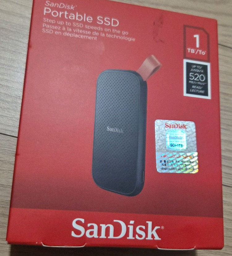 샌디스크 Portable SSD E30 G26 1TB 외장 SSD 인터넷 최저가 238,980원 USB3.x 10Gbps를 지원 USB A타입과 C타입 모두 연결 가능 읽기 속도는 800MB/s 크기는 96.9mm x 46.9mm x 9.91mm 무게 40g KC 인증