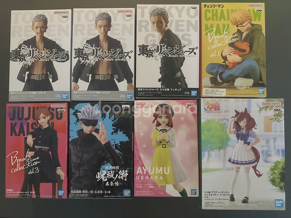 사진 속 모든 피규어는 국내, 일본 인형뽑기로 뽑은 제품으로 박스에 집게 스크래치가 있을 수 있습니다. 모든 제품은 정품, 미개봉입니다. ※ 택배별도(반택,알뜰 불가) /직거래 - 용산역,신용산역 49. 도쿄리벤저스 - 미츠야 타카시 A 1.3 50. 미츠야 타카시 B 1.3 51. 미츠야 타카시 1.2 52. 체인소맨 - 브레이크타임 컬렉션 – 덴지&포치타 4.0 53. 주술회전 - 브레이크타임 컬렉션 - 쿠기사키 노바라 1.2 54. 주술회전 - 고죠 사토루 주불의술 2.5 55. 러브라이브 니지가사키 학원 아이돌 스쿨 동호회 우에하라 아유무 1.2 56. 우마무스메 프리티 더비 나이스 네이처 1.4 57. 수성의마녀 슬레타 머큐리 1.0 58. 수성의마녀 니카 나나우라 1.4 59. 수성의마녀 추어추리 팬런치 1.0 60. 뻐꾸기 커플 Kyunties 우미노 사치 1.3 61. 오등분의신부 kyunties 나카노 이치카 간호사 ver. 1.6 62. 오등분의신부 Kyunties 나카노 이츠키 간호사 ver. 1.2 64. 마법소녀 마도카 마기카 토모에 마미 1.7 65. 아이돌마스터 - 밀리언 라이브 - 키사라기 치하야 1.6 66. 기동전사 건담 역습의 샤아 퀘스 파라야 1.7 67. 엘코코 헤븐 번즈 레드 - 이즈미 유키 2.0 68. 세가 마블코믹스 SPM피규어 미즈 마블 1.7 69. 아이돌마스터 릴랙스타임 - 사쿠라기 마노 1.3 70. 스파이패밀리 로이드포저 1.7 71. 블리치 solid and souls 소이폰 1.8 72. 디즈니 Fluffy Puffy 주토피아 주디 홉스 2.9 73. 스타워즈/깨어난 포스 월드콜렉터블 PREMIUM DARTH VADER (다스베이더) 1.7 74. 영웅용상 울트라맨 티가(B:티가 토네이도) 2.0 75. 솔리드 엣지 출진3 드래곤볼 Z 베지터A 3.0 76. 솔리드 엣지 출진3 베지터 초사이언 3.0 77. 앱솔루트 퍼펙션 피규어 3종 세트(손오공, 베지터, 트랭크스) 12.0