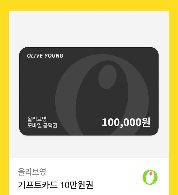 올리브영 사용 가능한 10만원 모바일 상품권이에요. 유효기간은 2027년 1월 31일까지라서 충분히 사용하실 수 있어요!