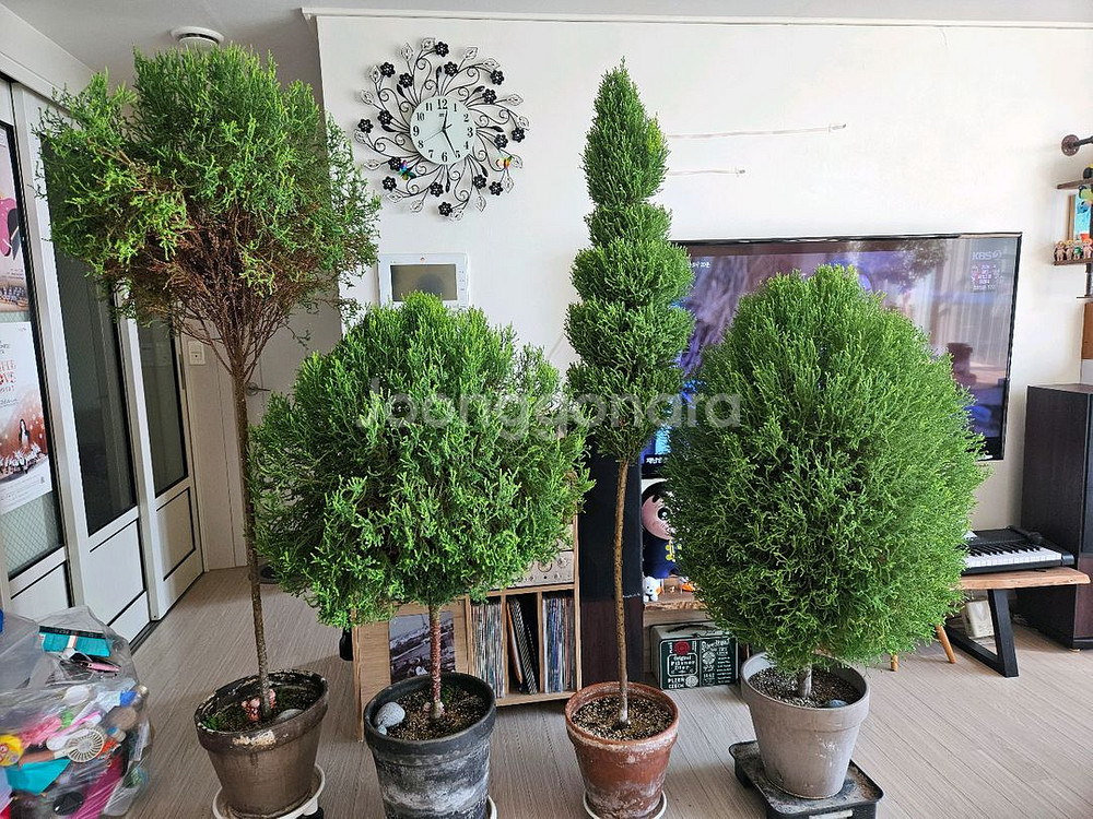 율마 입니다. 집안 정리중이라 판매합니다. 높이 큰거 기준 185센치 낮은것은140정도입니다. 4개일괄이구요. 화분 화분받침 까지 포함 입니다. 일반 승용차로는 이동이 힘들것 같습니다. 목감한양수자인 직거래만 가능합니다.