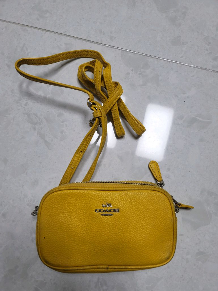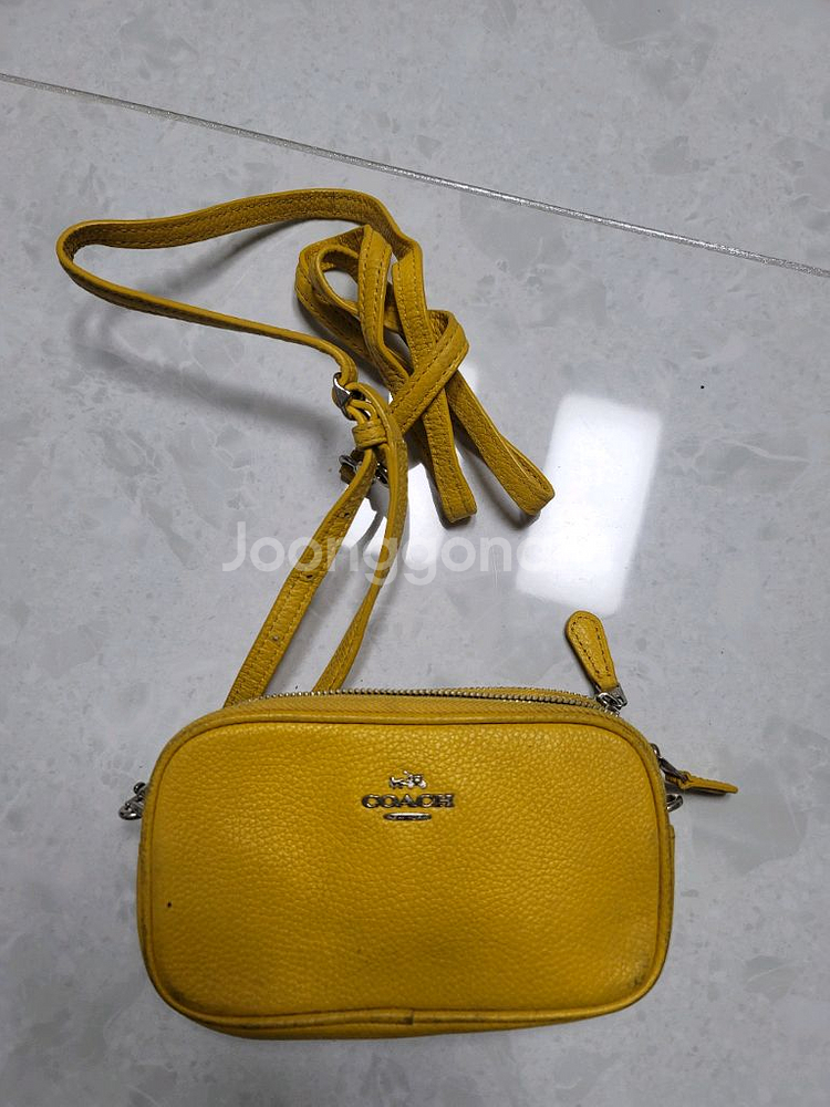 코치 미니백 노랑 리모컨 크기비교 보심되요 크기 모서리부 오염있습니다