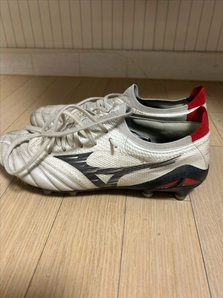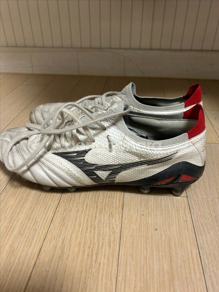 260 축구화예요. 사용감은 있지만 아직 착용 가능한 상태입니다. 3달 신었고 캥거루가죽이라는 장점이 있습니다