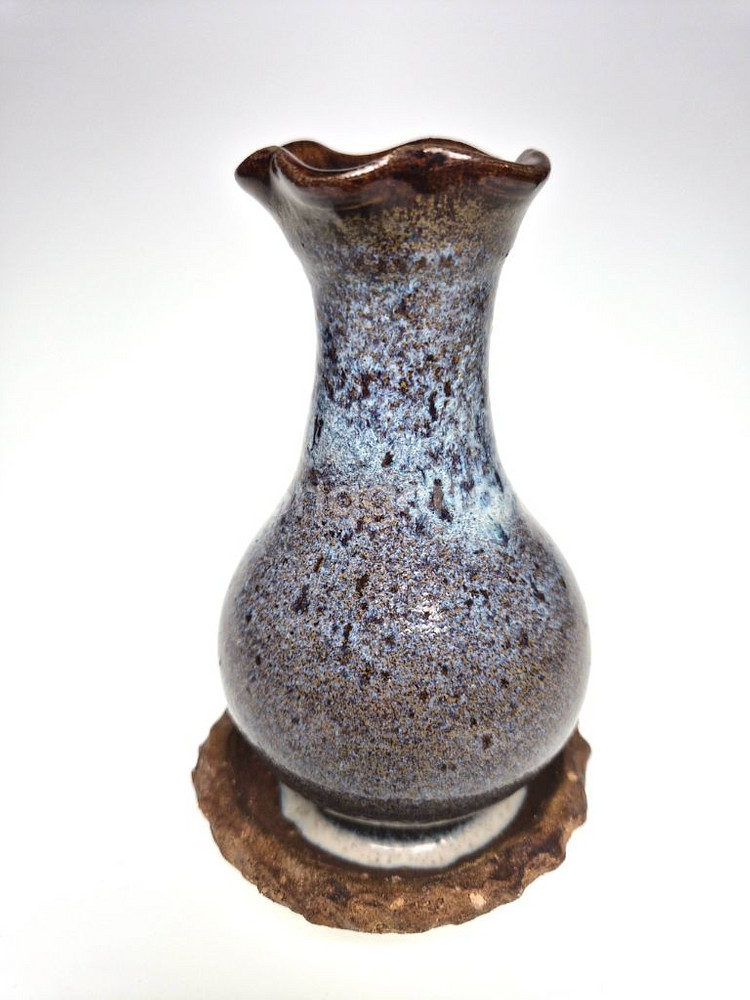 •사이즈 높이 약 14.8cm •작품설명 송대 군요 계열로 판단되는 소형 호형 화병입니다. 전체 기형은 하부가 단단히 받쳐진 안정적인 비례를 이루며, 짧은 목 위로 파상형 구연을 형성한 전형적인 군요 소형 화병 형식입니다. 유면은 회청색 바탕 위에 자색·갈색 계열의 반점이 고르게 스며들어 있으며, 고온 소성 과정에서 자연스럽게 형성된 유약의 흐름과 집적이 뚜렷하게 관찰됩니다. 저면에는 가마터에서 사용된 받침이 그대로 붙어 있는 출토 상태로 남아 있어, 실사용 기물이라기보다는 소성 환경과 제작 흔적을 직접적으로 보여주는 자료적 성격이 강한 편입니다. 굽 주변의 토질감과 유약 경계 또한 인위적 정리가 없는 자연 상태를 유지하고 있습니다. 군요 특유의 유색 변화와 가마 소성 흔적을 함께 감상할 수 있는 소품으로, 군요 계열 수집이나 가마 관련 자료 수집에 적합한 기물입니다. [유의사항] •결제후 취소,교환,반품은 불가합니다. •시대언급 및 내용은 판매자의 개인 견해 이므로, 진위여부보장이 불가합니다. 최종적인 판단은 각자의 안목으로 부탁드리며 법적 책임을 지지 않습니다. •미감정품으로 진위여부는 각자의 안목으로 판단 바랍니다.