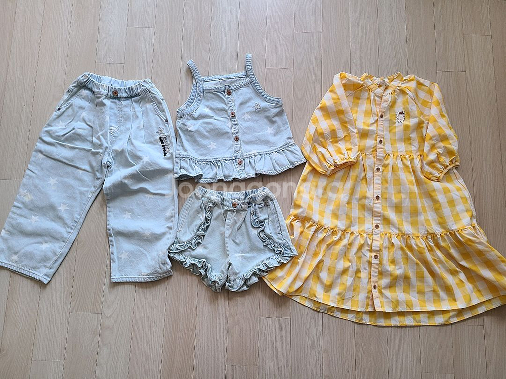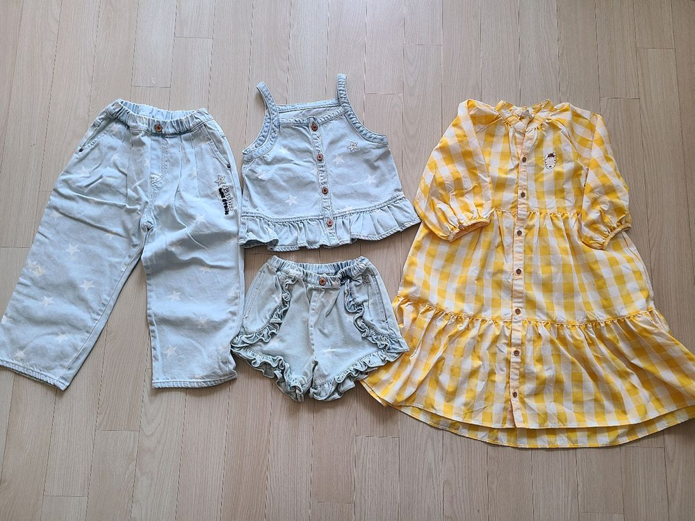 리미떼두두 스타 데님 시리즈 3종 러플 베스트(L)+ 팬츠 (L) +롱팬츠 (XL) 3.0 리미떼두두 옐로우 체크 원피스 (L) 1.5 총 4.5 일괄 양도합니다. 롱팬츠는 L로 구매했는데, XL로 왔어요. 이 부분 잘 확인하시고 구매해주세요. ‼️ 아래글 모두 숙지하신 후 문의주세요. ‼️ ➡️ 조카들 옷 사주는 이모입니다. 사이즈 문의에는 답변을 드릴수가 없어요. 옷들은 컨디션에 따라 가격이 다릅니다. 시착만 했거나 아예 새상품은 원가 양도, 착용 횟수가 적은 상품은 50% 이하 양도, 횟수가 많은 상품은 30% 미만으로 저렴히 양도하니, 예민하신 분은 새 옷으로 구매해주세요. 제 손을 떠난 모든 상품은 교환 환불 불가합니다. ❌️교환 환불 에눌 불가❌️ 신중한 구매 부탁드립니다. 🙏