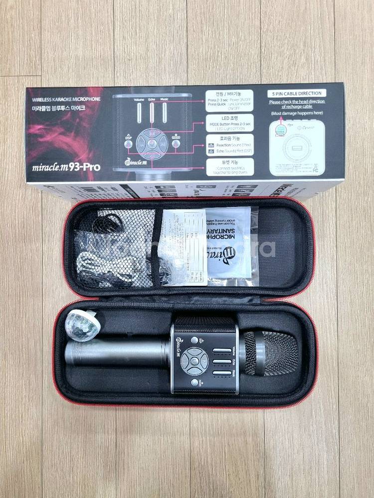 놀러가서 한번 쓰고 방치하고 있어서 판매해요 비닐도 안벗기고 미러볼이랑 기타 모든 구성은 그대로입니다 음량이랑 꽤 빵빵해요 블루투스 연동하면 노래방처럼 노래 부를 수 있더라구요