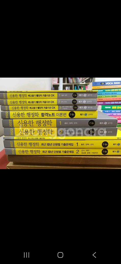 공무원 시험 교재 저렴히 드립니다 메가공무원 입니다 책상태 완전 새것이 대다수이며 필기 되있는것은 미비합니다 거의 새책이라고 생각하시면 됩니다 모두 반값에 드립니다 1. 신용한 행정학 비교불가 행정학 기출지문 1총론/정책 신용한 행정학 비교불가 행정학 기출지문 2조직/인사 신용한 행정학 비교불가 행정학 기출지문 3재무/정보화.환류/지방자치 총 3권 38000원>>19000원(판매완료) 2. 신용한 행정학 합격노트 이론편 신용한 행정학 합격노트 끝끝편 총 2권 26000원>>13000원(판매완료) 3. 신용한 행정학 1총론/정책/조직 신용한 행정학 2인사/재무/정보화.환류/ 지방자치 총 2권 47000원>>23500원(판매완료) 4. 신용한 행정학 최신1년 단원별 기출문제 총 1권 11000원>>5500원(판매완료) 5. 신용한 행정학 최근10년 단원별 기출문제1,2 총 2권 39000원>>19500원(판매완료) 6. 전한길 합격생 필기노트(스프링) 총 1권 15000원>>7500원(판매완료) 7. 전한길 한국사 2.0 ALL IN ONE 총 1권 25000원>>12500원(판매완료) 8. 전한길 한국사 3.0 기출문제집 1전근대사 2근현대사 총 2권 41000원>>20500원(판매완료) 9. 기태국어 어휘 만이야 총 1권 22000원>>11000원 10. 기태국어 1어법과 독해의 기본 기태국어 2어법의 완성 기태국어 3독해의 완성 총 3권 49000원>>24500원 11. 기태국어 통계적 기출분석 1,2 총 2권 40000원>>20000원(판매완료) 12. VOCA 3000 총 1권 23000원>>11500원(판매완료) 13. 조태정 Re-grammar 합격문법 125 총 1권 24000원>>12000원(판매완료) 14. 조태정 Routine 실전문법 525 총 1권 24000원>>12000원(판매완료) 15. 조태정 Routine 기출독해 조태정 Routine 기출문법 조태정 Routine 기출어휘 생활영어 총 3권 57000원>>28500원(판매완료) 16. 조태정 Routine 실전독해 총 1권 27000원>>13500원(판매완료) 17. 유휘운 요약노트(스프링) 총 1권 17000원>>8500원(판매완료) 18. 유휘운 기출문제 풀어주는 기본서1 유휘운 기출문제 풀어주는 기본서2 총 2권 46000원>>23000원(판매완료) 19. 유휘운 진도별 기출문제집 1,2 총 2권 33000원>>16500원(판매완료) 20. 유휘운 기출문제 요약노트 총 1권 11500원>>5500원(판매완료) 21. 유휘운 사례형 풀어주는 기출문제집 총 1권 9000원>>4500원(판매완료) 22. 이유진 국어 진입문 총 1권 19000원>>8500원 수원지역 직거래 가능하시며 택배시 4000원 추가됩니다 010 2554 3651 문자주세요~