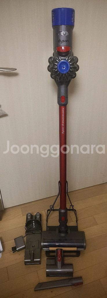 다이슨 V8 앱솔루트 엑스트라 무선청소기 판매 배터리는 호환용으로 새제품 손잡이쪽 파손이 있고 작동에는 문제가 없습니다. 운반 협의 레드 색상으로 디자인도 예쁘고, 강력한 흡입력으로 집안 청소를 깔끔하게 할 수 있어요 사용감은 있지만, 기능상 문제 없이 잘 작동합니다 충전기와 거치대, 그리고 다양한 툴들이 함께 포함되어 있어 편리하게 사용하실 수 있습니다.