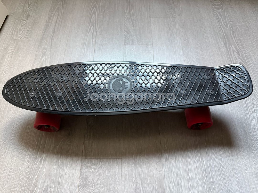 블랙 데크에 레드 휠이 포인트인 크루저 보드예요. 사용감은 있지만 상태 양호하고 바로 타실 수 있어요!
