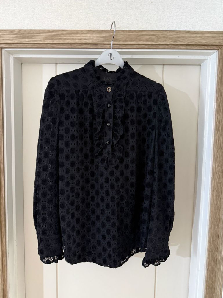 지고트 레이스 블라우스 상태 깨끗해요 레이스 사이에 벨벳?느낌의 소재가 섞여서 고급스러워요 원피스나 롱스커트, 슬랙스, 코트나 자켓류와 코디하면 멋스럽습니다 사이즈 사진참고 중고감안 교환환불불가