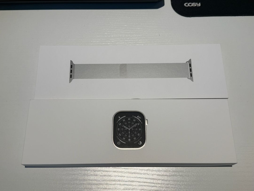 애플워치 11 46mm 밀레니즈 루프 네츄럴 티타늄 S/M 새제품 팝니다 미착용 입니다 직거래는 월계 이마트 고양 한일원스타 지식산업센터 앞에서 하겠습니다