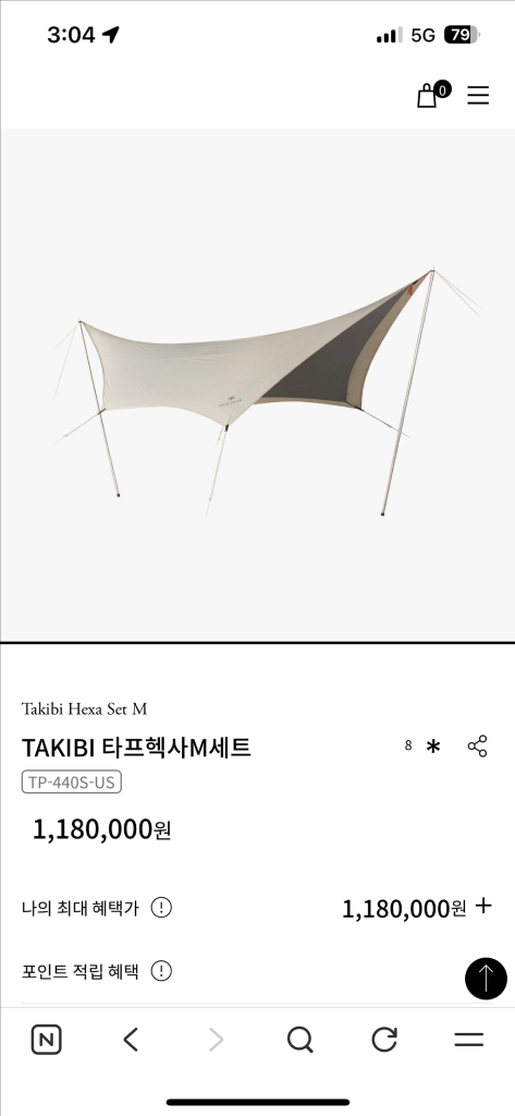 스노우피크 TAKIBI 타프 헥사 M 세트입니다. 구매 후 7박 정도 사용하고 와이프 임신으로 판매합니다.