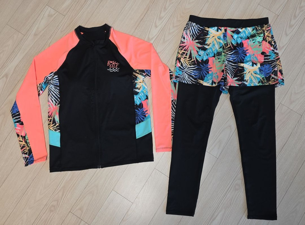 24년도구매 모델명 BEG-W602K 검색 가능 한두번 입었어요 래쉬가드 결사이로 바다모래도 거의없슴 15호이나 바지길이가 작게나왔어요 키 최대150까지...다리가 길면 발목 더 나와요;; 여아용 가슴패드 내장이요 상의기장 58 가슴둘레 82정도 바지기장 80 허리둘레 66정도