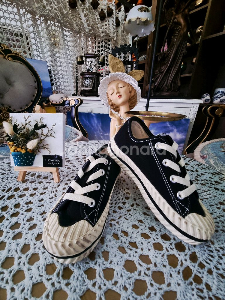 키즈용 네이비 컬러 스니커즈예요. 화이트 끈과 밑창으로 포인트를 준 깔끔한 디자인이에요. 상태 양호하고 아이가 신기 좋은 사이즈입니다.