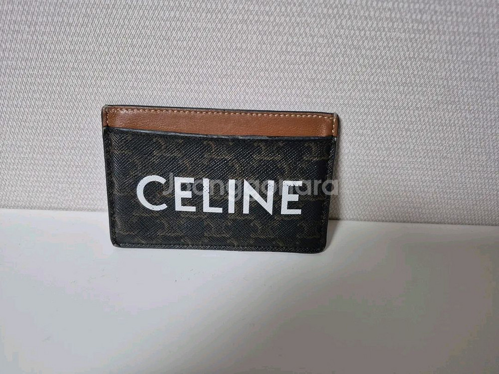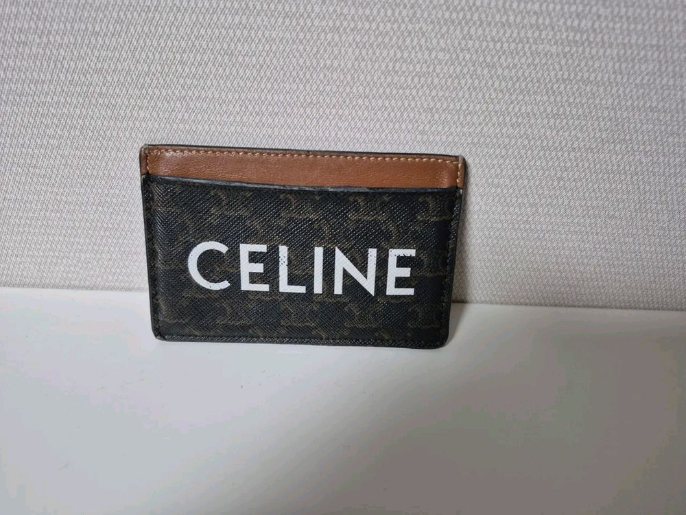 셀린느 정품 트리옹프 캔버스 카드 지갑 카드홀더 팝니다 셀린느 트리옹프 캔버스 카드 지갑 정품은 브랜드 시그니처 트리옹프 패턴이 새겨진 코팅 캔버스 소재에 탠 컬러 안감이 조합된 컴팩트한 카드홀더로, 프렌치 럭셔리의 미니멀한 매력을 상징합니다 주머니나 미니백에 쏙 들어가는 슬림한 형태이며, 외부 플랫 포켓 1개와 내부 카드 슬롯 2~3개, 플랫 포켓으로 구성되어 카드 4~5장과 영수증·명함을 여유롭게 수납할 수 있습니다 금장 트리옹프 스냅 버튼은 흠집 방지 테이핑 처리로 보호되며, 카프스킨 안감이 부드러운 터치와 내구성을 더해 일상 사용 시에도 형태 변형 없이 유지됩니다 트리옹프 캔버스는 오염과 스크래치에 강한 코팅으로 휘둘러 다녀도 깔끔함을 잃지 않고, 데일리 명품 아이템으로 사랑받는 제품입니다 사진상 브랜드 로고 와 테두리가 살짝 세월의 흔적 있지만 캐주얼부터 세미포멀 룩까지 포인트 주는 필수 액세서리입니다