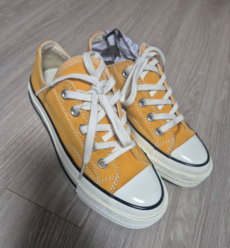 새상품)컨버스척테일러 사이즈225 크게나와 실제230~235 사이즈가 신기좋아요 머스터드색상 새상품입니다