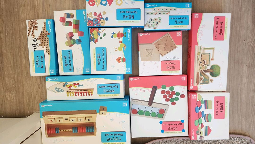 플레이팩토 키즈 step2,3의 교구 11개입니다. 전체 단계 갖고 있다가 쉬운 단계는 전에 방출하고 중요하고 필요한 교구들 갖고 있다가 이제 내놓습니다~ 플팩키즈가 가볍게 아이들과 놀이하듯 수감각 키우는 활용이 참 좋더라구요^^ 장난강처럼 갖고 놀면서 아이랑 재밌게 수놀이 해보세요~