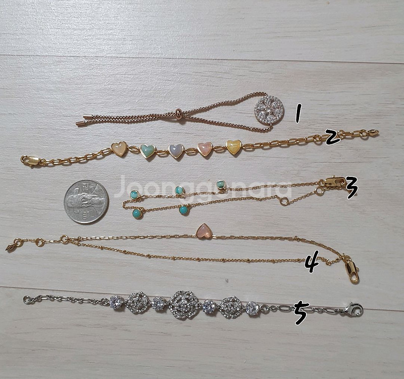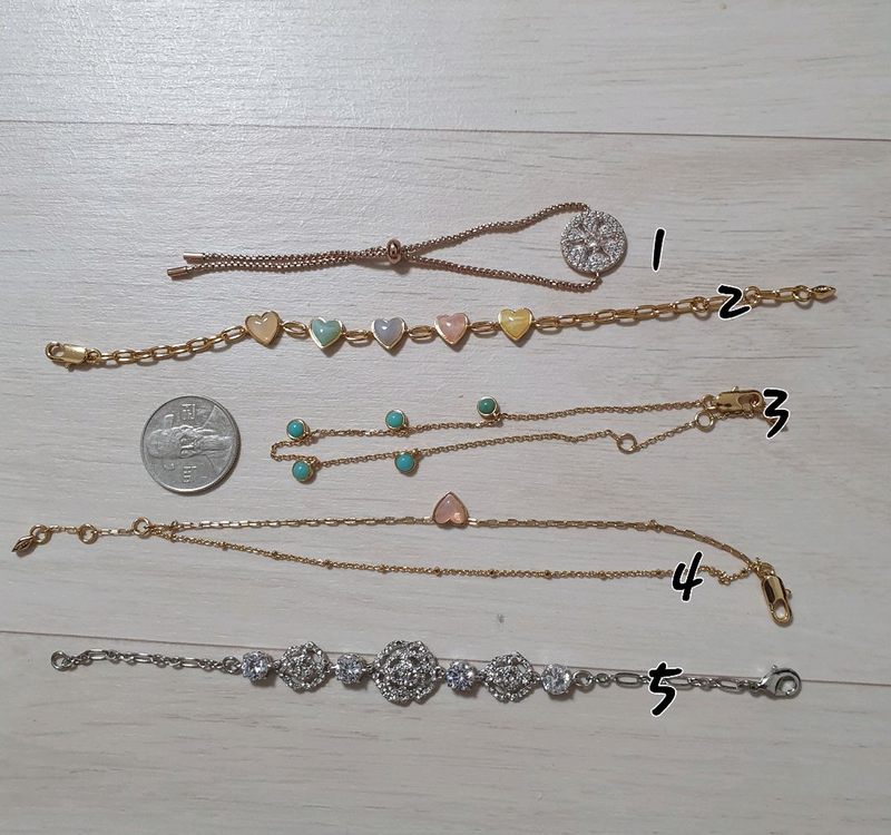 새상품 낱개 가격입니다. 레이어드로 응용하셔도 너무 예뻐요~ 4개 다하시면 5번은 사은품으로 드립니다🤗 육안으로는 안보이는데 확대하면 화살 표시한 곳 큐빅이 빠졌어요.