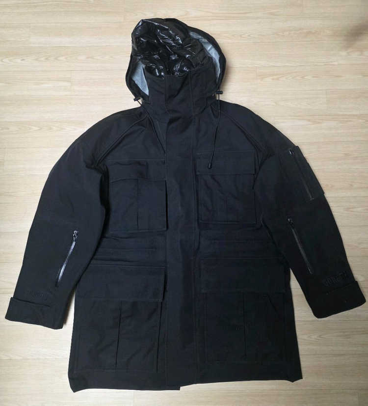 ☑️ 제품 상태, 상세 사진 참고 1. 고어텍스 외피 안쪽 밑단 길이조절 버튼이 있어 숏과 롱 두가지 스타일 연출 가능 2. 구스다운 내피 탈부착 가능하며 단독 착용 가능 3. 외피 단독 착용 가능하며 밑단 길이 조절 가능하며 가벼움 4. 외피 내피 각각 목부분에 후드 삽입 가능 5. 1~4번으로 총 10여가지 스타일 연출 가능 6. 내피 약 100~105, 외피 100~120 예상됨 7. 당시 출시된 고어텍스 콜라보 189 209 229 중 가장 가볍고 활용도 좋은 모델, 189는 한가지 스타일만 가능, 229는 너무 무거움 8. 손목 안쪽 데미지 있으나 안쪽이라 잘 보이지 않음 - 왼쪽 작은 빨강 원: 준지 as로 작은 오점 박음 처리 - 왼쪽 큰 빨강 원: 살짝 스크래치 보임 - 오른쪽 빨강원 2개: 흰색 점 2개 보임 ⚠️ 반품, 환불 불가