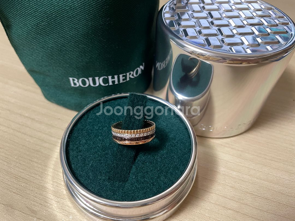 부쉐론 콰트로링 다이아 버전 54호 입니다 너무 예뻐서 사놓긴 했는데 2회정도 외출시 잠깐 착용한게 전부입니다. 그냥 거의 새거 예요. 2024년 12월 구매제품이며 보증서, 케이스, 개인정보 지운 인보이스 사본, 쇼핑백 구성품 모두 같이 드립니다. 택배거래 가능하나 직거래 선호해요. 펑방지금 10만원 있고 청담역 혹은 인근역에서 거래가능합니다. 개인간 거래로 반품 불가합니다.