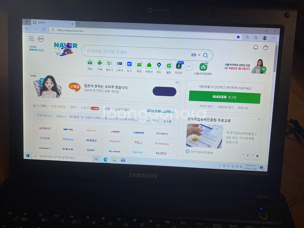 정상동작 win10 설치 정품 미인증 320g hdd 배터리완방 충전기 연결 사용필요 본체 전원아답터 워딩 검색 유투브가능 잠실나루역 직거래 가능.