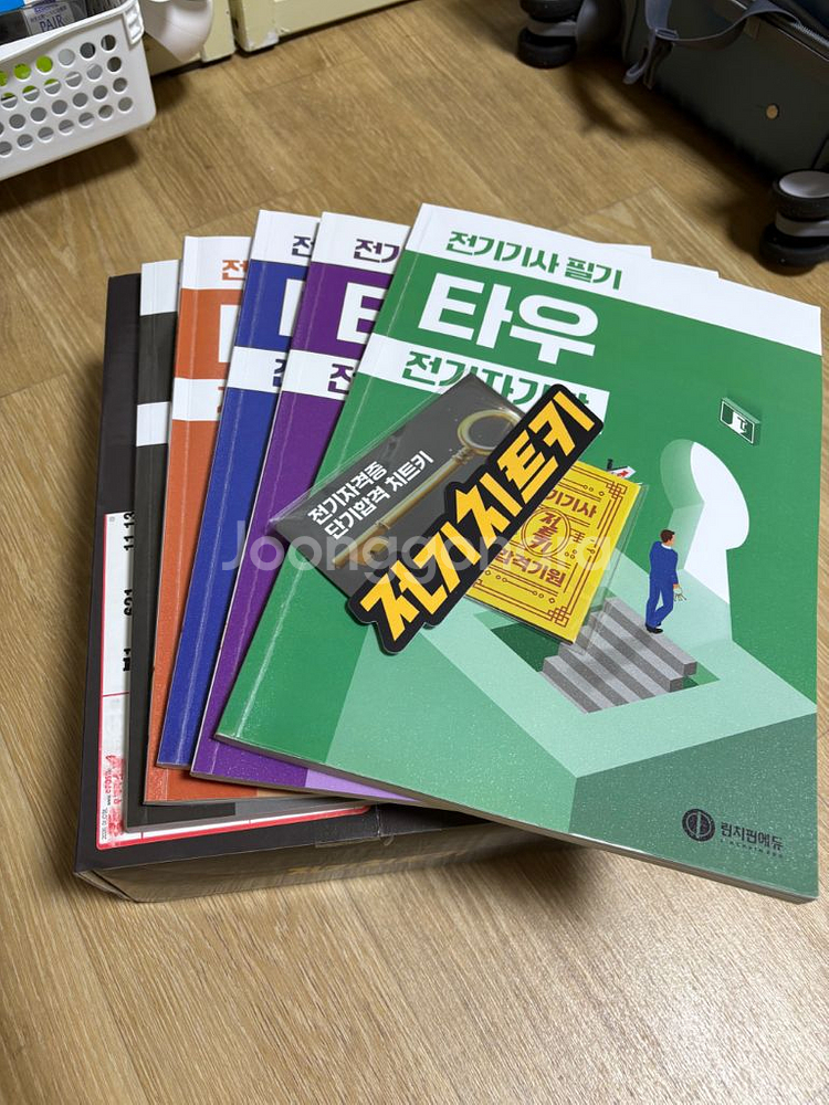 전기기사 필기 문제집입니다. 전기치트키 타우(usb X) 사용감 없는 새 책에 가깝습니다. 펼쳐서 태블릿에다 풀어서 책에 아무 표시 안돼있습니다. 유형별로 정리돼있어서 빠르게 1회독 가능합니다. 9일 공부하고 26-1회차 필기 합격하여 판매합니다. 처음 샀을때 구성품 그대로 다 있고, 배송왔던 박스에 그대로 똑같이 보내드립니다.