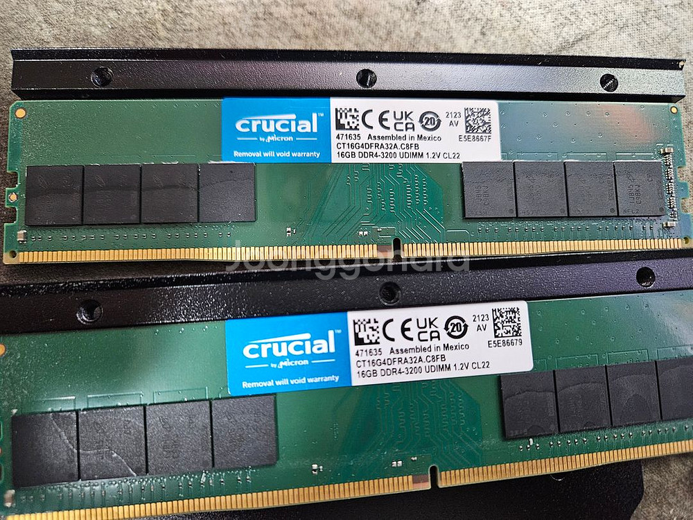 DDR4 16GB 메모리 2개입니다. 방열판 포함 구성이며 16기가 2개 32기가 입니다 마이크론 E 다이 램입니다. 방열판 포함으로 판매합니다 삼성 B다이와 견주어 쓸만한 메모리입니다. 오버폭 마진도 괜찮아서 오버해서 게임용으로 쓰기도 좋습니다 5800x3d 구성에 1.35v 3600 CL16 으로 안정 되게 오버 들어갑니다 보드 구성 괜찮을 시 1.45v 3800 cl18 구성 가능합니다 쿨링은 옆면 여시던지 쿨링팬 달아주면 안정적입니다