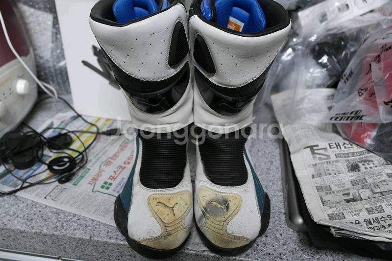 퓨마 방한 부츠 39호 -흰파- (반품없이 7만원) 사이즈 유로39호 (깔창 하나 더 넣으시면 38호까지 가능함) 39호는 245~250mm정도.발볼이 넓지 않는 255mm까지 가능함 상태 기능정상.발등에 기어변속으로 인한 때가 묻음.지울수있음. 판매금액 8만원 (반품없이 7만원에 가능함) **퓨마정품.발등에 자동차용 콤파운드로 닦으세요.지워짐** **밑창 퓨마 로고 보일정도로 90%이상 남음**