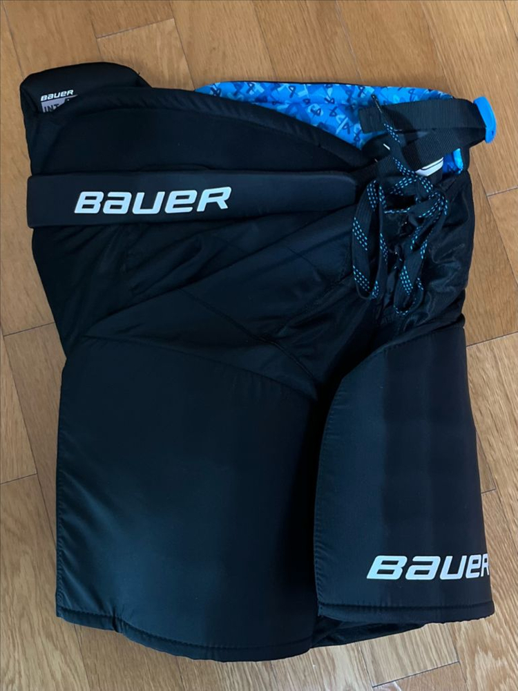 바우어 하키팬츠 딱 한번 입어서 새상품과 같은 상태입니다 사이즈 인터 미듐으로 키 164cm 이하 분께 잘 맞아죠