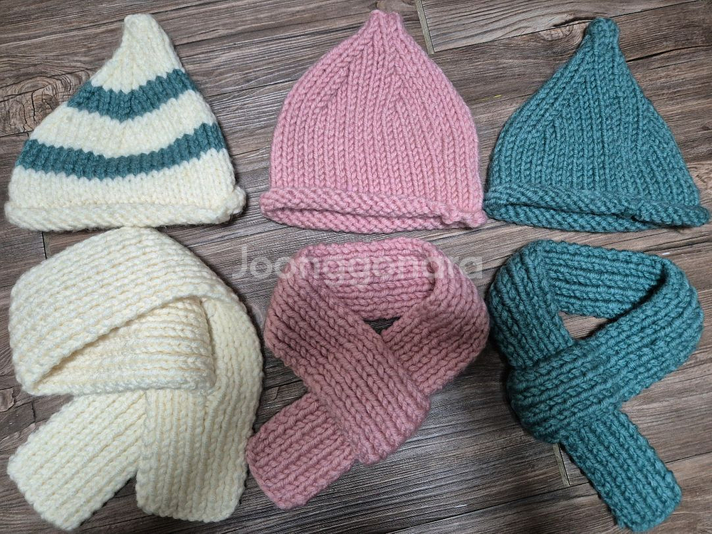 중고거래상 반품안됩니다. 택배는 우체국택배로 보내드립니다(택배비 3천원) 하실분만 연락주세요🙏 손뜨개 모자&목도리세트 3종 1세트 - 5천원 - 핑크 판매완료 -