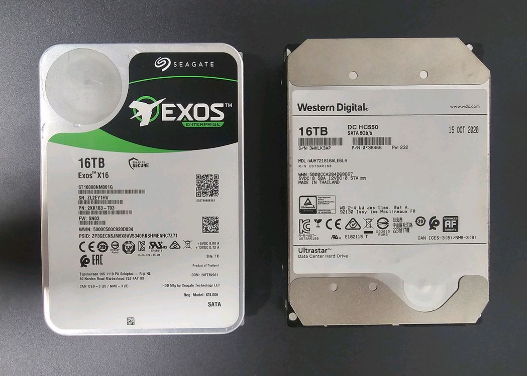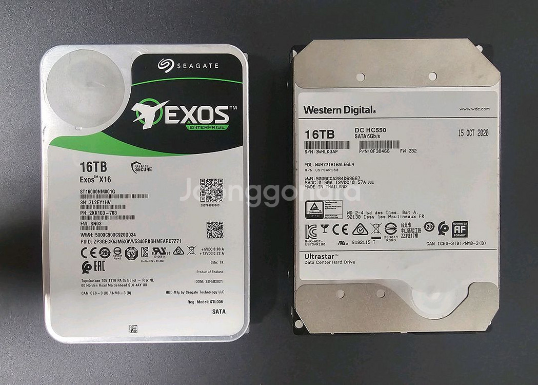 씨게이트 엑소스 & WD HC550 16TB HDD 팝니다 개당 29만 AS는 만료됬으나 제조사보증 250만시간 입니다. 거의 백업용도로 나스에서 공회전만 돌고있어서 시간은 길어도 상태는 좋습니다 문의 없을 시 안전결제 넣어주십쇼