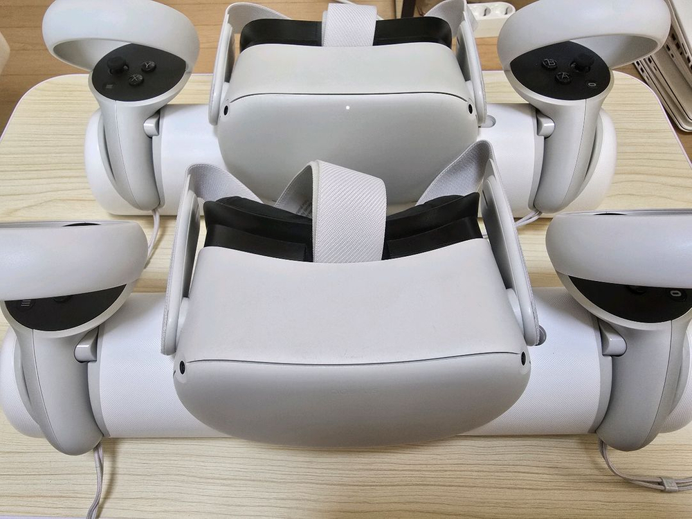 오큘러스 퀘스트2 64기가 모델 세트입니다. 2개 있습니다 개당 19만원입니다 구성품은 사진에 있는게 다입니다 앤커 충전독도 드리는데 헤드셋은 충전 잘되는데 컨트롤러는 영상처럼 깜빡이면서 충전 안됩니다. 그리고 사진에 있는 헤드셋 자석 충전포트 1개만 있습니다. 먼저 사는 분한테 있는걸로 드릴게요 밴드랑 끈부분 세탁했습니다 상태는 사용감좀 있어요 환불 안됩니다 안전거래 안해요