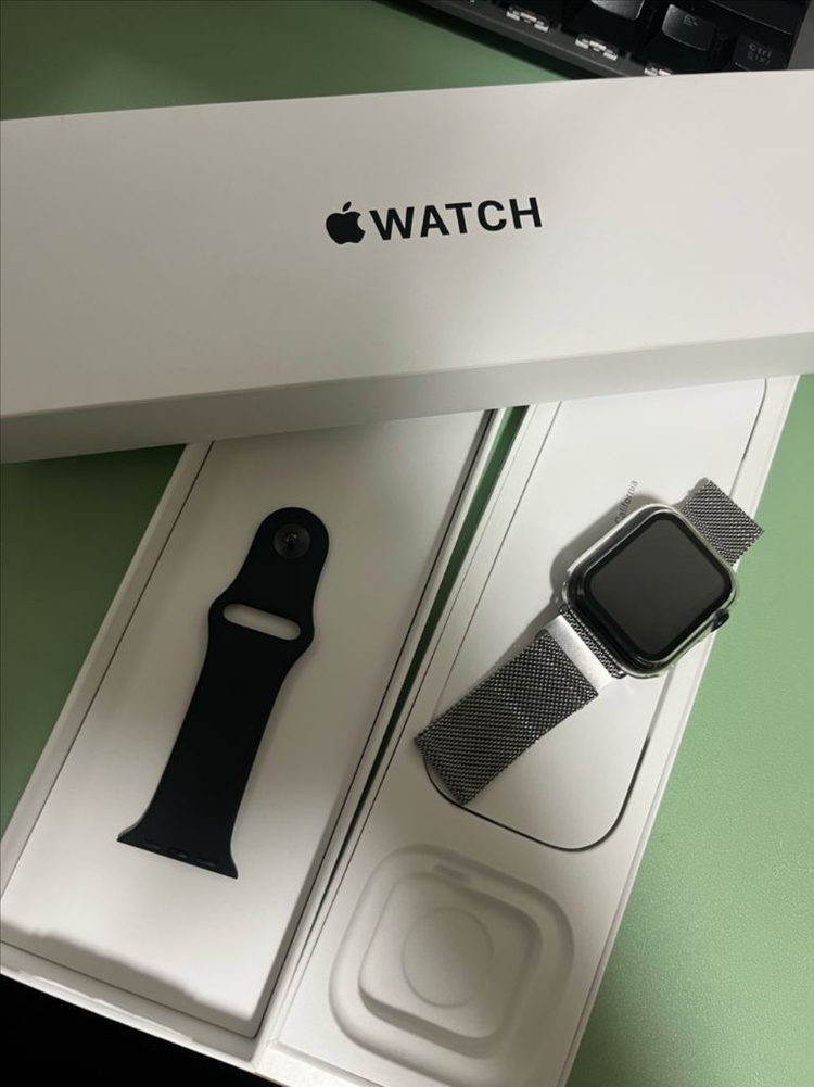 애플워치 SE 40mm GPS 모델 미드나이트 배터리 성능 최대치 100% 입니다 구성품 기본 스트랩 한쪽이 사라진 상태이고 스트랩 박스는 있지만 안에 구성품은 없습니다 충전기 새걸로 그대로 있습니다 25년 11월에 선물 받았고 필요성을 못느껴서 실사용 3주입니다. 필름까지 사용해서 깨끗하게 사용하였고 잔기스 거의 없습니다 거의 새상품 입니다 쿨거래 하시면 필름과 따로 구매한 스트랩까지 드리겠습니다 필름에는 기스 있습니다 본체에는 없습니다 편하게 연락주세요!