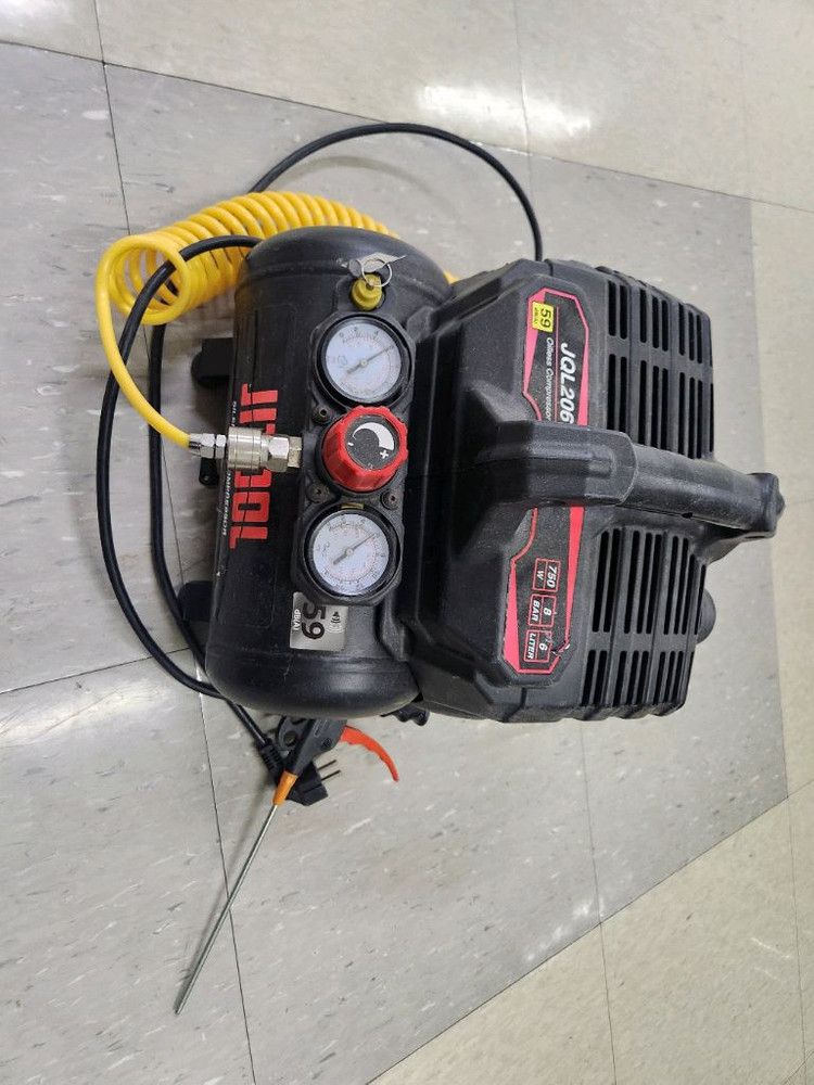 JITOOL JQL206 오일리스 콤프레셔입니다 실내에서 매장 청소용 주1회 정도 사용했습니다! BESTO 에어건 함께 드립니다 59dB 저소음 콤프레셔로 조용하게 사용 가능합니다 구매가격 20만원이었습니다