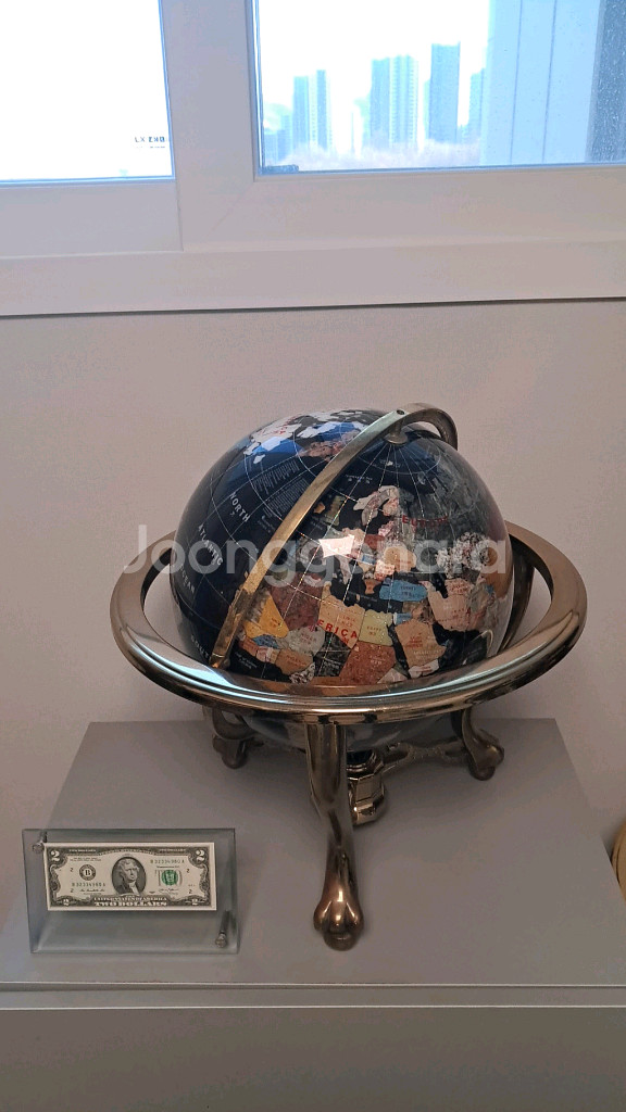 홍콩에서 광물(화강암, 대리석, 조개껍질 등)로 수작업으로만든 고급 지구본