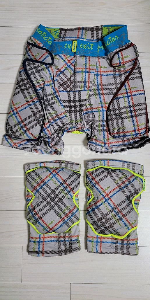 스노우보드 보호대 엑시트 스키 엉덩이보호대 무릎보호대 S사이즈 뜯어짐 있어 꿰메어 사용하실분 허리밴딩2곳, 무릎보호대1곳 쿠션 짱짱하고 사용하는데 불편함은 없습니다