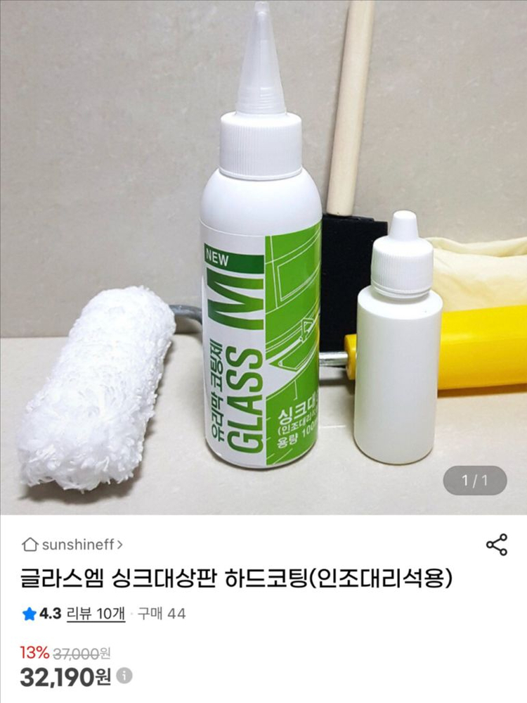 글라스엠 싱크대상판 하드코팅제 새제품입니다 셀프 시공으로 간편하게 코팅할 수 있습니다 구성품은 사진에 보이는 대로 모두 포함되어 있습니다 (25년10월생산)