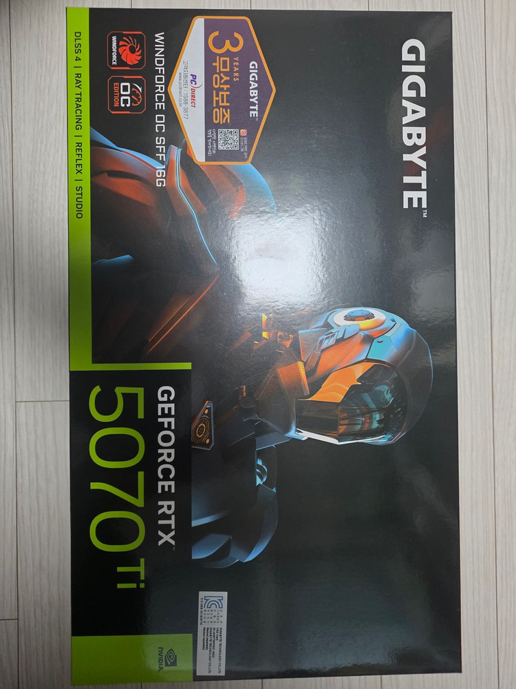GeForce RTX 5070 Ti 그래픽카드입니다. 박스 상태로 보관되어 있어요. 게이밍이나 작업용으로 성능 좋은 제품입니다. 구매일 2/5일 영수증없음, 미개봉이고 , 선물받았는데 필요없어서 팝니다. 엥간하면 직거래만 합니다. 서울 응평구