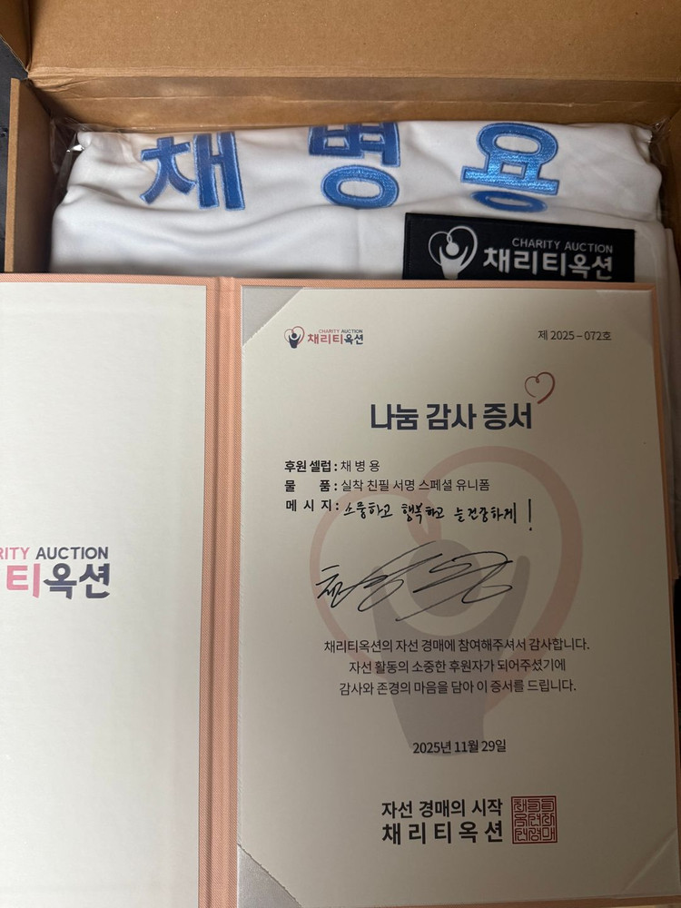 2025 자선야구 채병용 전 코치님 실착유니폼 양도합니다. 낙찰가액으로 판매합니다. 구매하시는분 SSG 랜덤싸인볼 드립니다. 판매가(택포) - 150,000원