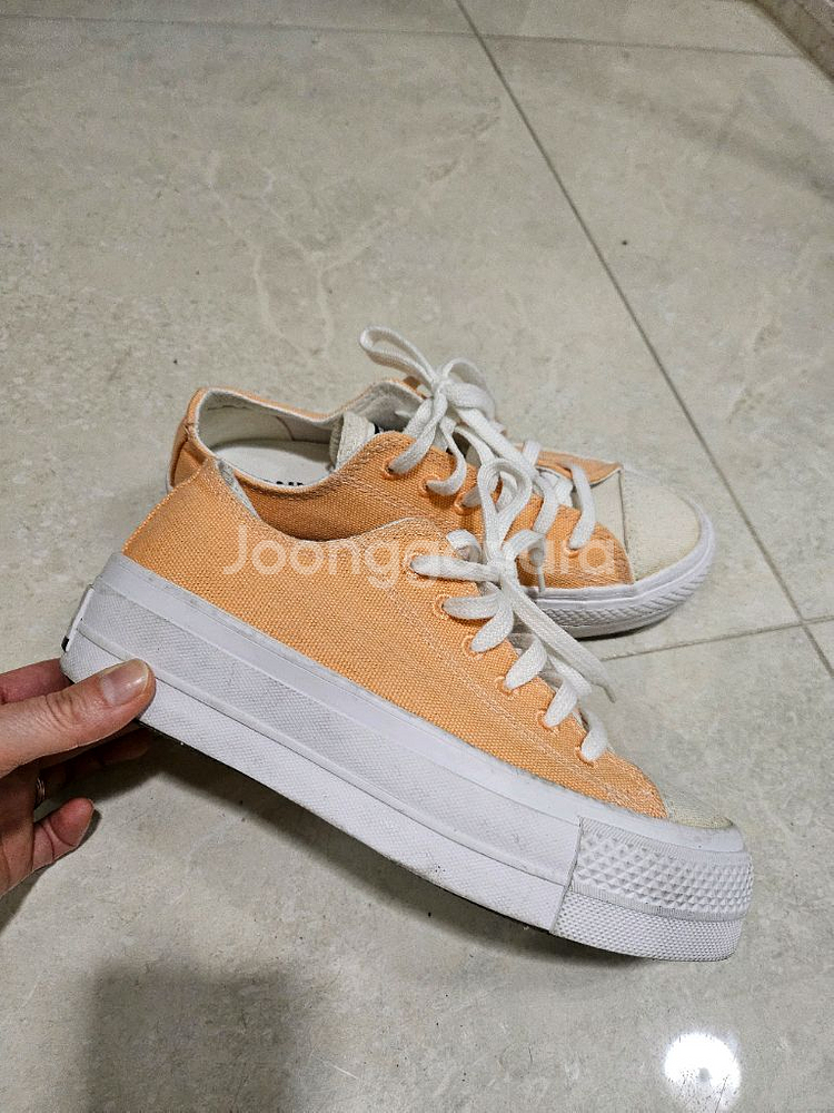 컨버스 척테일러 225 색상 톤다운된 오렌지톤으로 진팬츠 또는 면바지와 잘 어울려요 상태 깔끔해요 배송비는 별도 추가됩니다 교환반품은 안받으니 유념해주세요