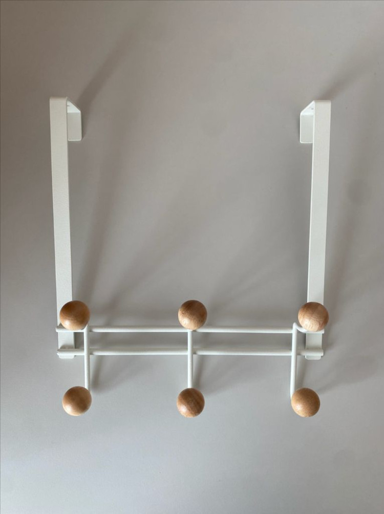 자주 우든볼 도어후크 6구짜리 문걸이 행거입니다. 문에 걸어서 사용할 수 있는 제품이라 설치가 간편하며 원목볼로 되어 있어 의류 손상이나 늘어짐이 덜합니다. 우드와 화이트 색상의 조합으로 어느 문에나 잘 어울립니다. 편의점 반값(알뜰)택배 혹은 일반택배 가능합니다.