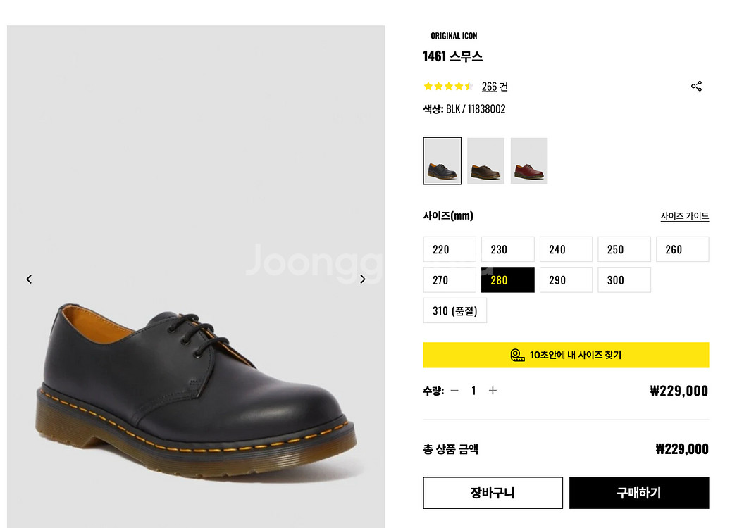 닥터마틴 1461 스무스 280 미착용 새제품 입니다
