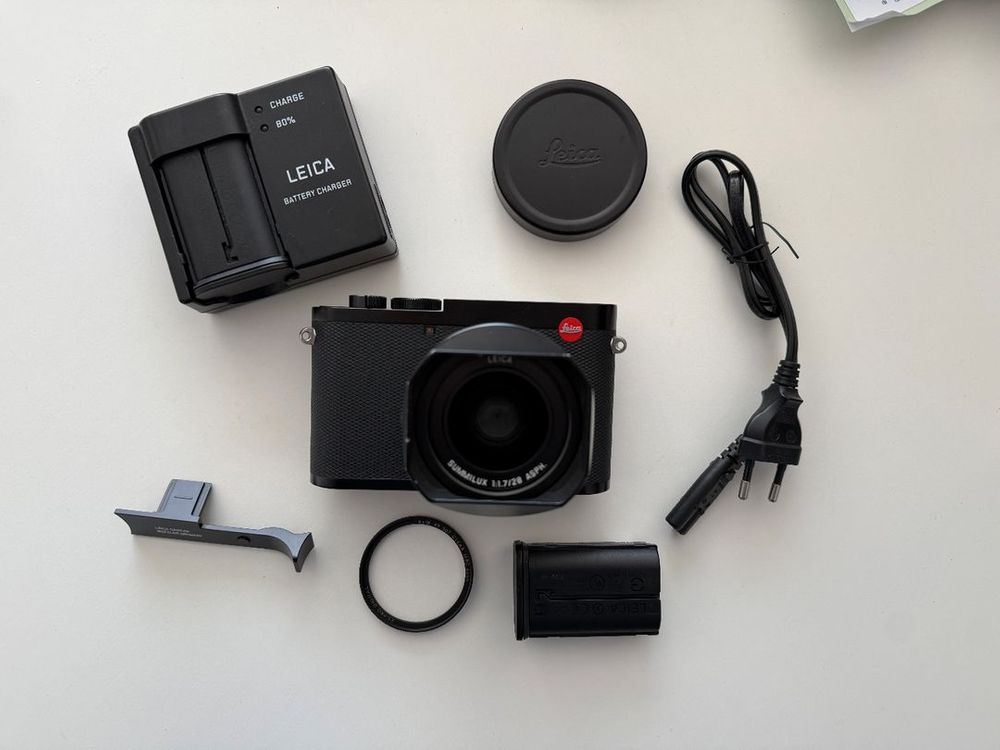개인정보(거래정보)를 주고받는 행위는 사기에 노출될 수 있으므로 즉시 중고나라로 신고해 주세요블랙 색상의 라이카 Q2 카메라입니다. 사진에서 보시는 것처럼 충전기, 배터리 등 구성품 모두 드립니다. 49mm B+W 필터도 같이 드려요. 별도 문의 없으시면 바로 안전결제 부탁드려요! 엄지그립. 배터리 두개. 풀박스 입니다. 네고 가능하니 연란 많이주세요